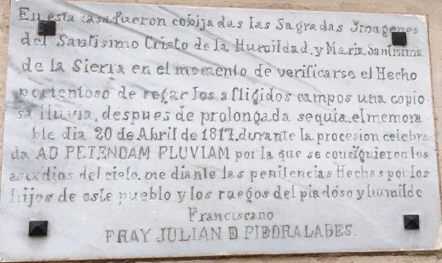 No voy a repetir los tan conocidos escritos de D. Agustín Salido sobre el «Suceso Prodigioso». Ni tampoco lo que escribió a través de sus poemas, D. Luis Espinosa Pérez sobre la celebración del I Centenario, ni hablaré del libro que hace unos años con motivo del II Centenario escribió Mª Dolores López-Tercero Sánchez.