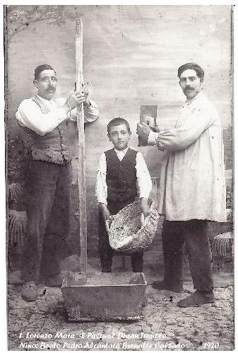 Lorenzo Fernández Molina.- Aunque el pueblo esté rejuvenecido y modernizado, nosotros, los mayores, recordamos aquel pueblo con fachadas blanqueadas con cal, paredes de tierra apisonada golpe a golpe con pisones de madera. Los albañiles, dentro de los tapiales, mientras golpeaban los pisones, pisoteaban con sus pies la tierra que les subían en espuertas con soga y garrucha para repartirla dentro del cajón.