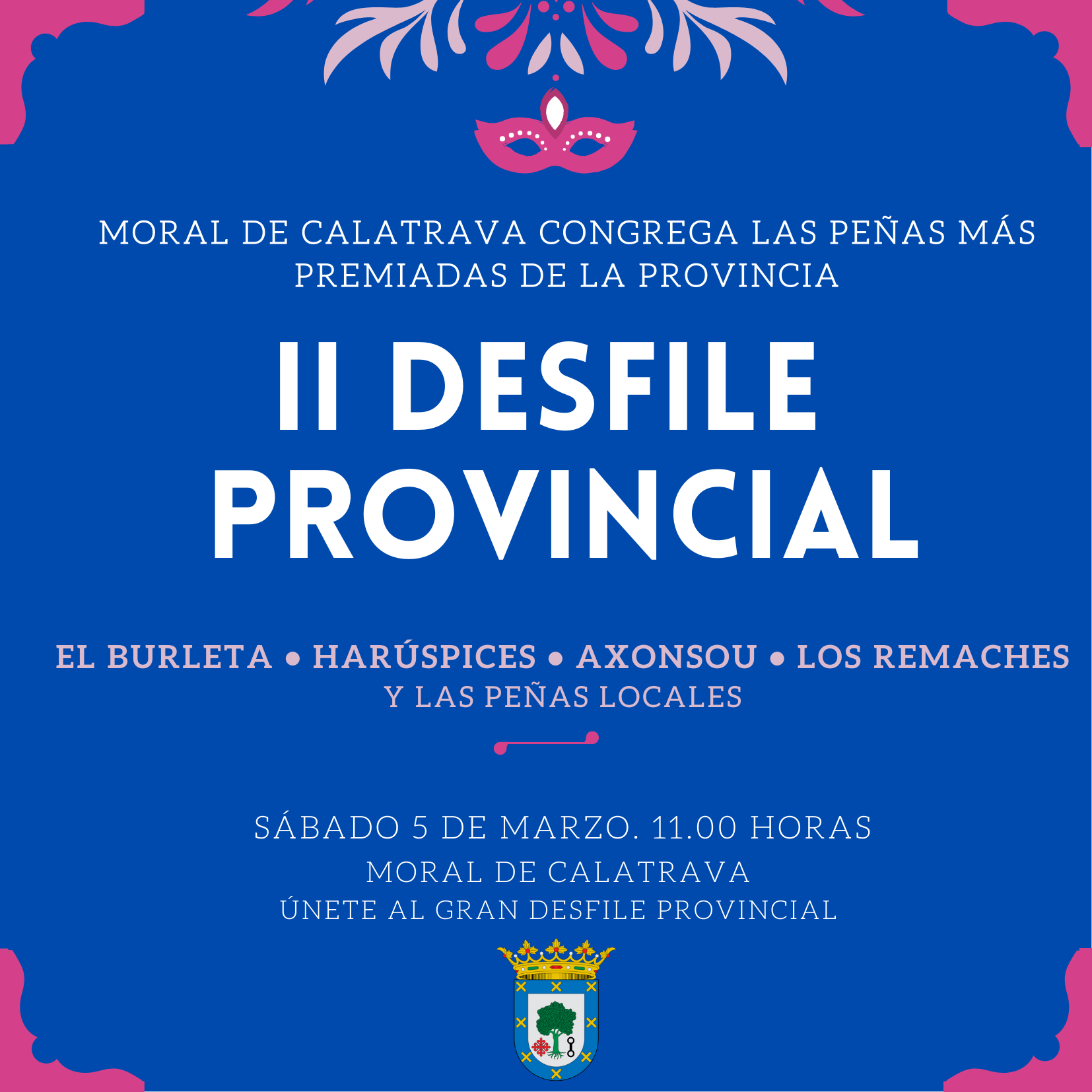 Este sábado 5 de marzo Moral de Calatrava se une a los grandes desfiles provinciales retomando la II edición del Desfile Provincial que congregará en la localidad a las peñas más importantes y premiadas de la provincia de Ciudad Real.