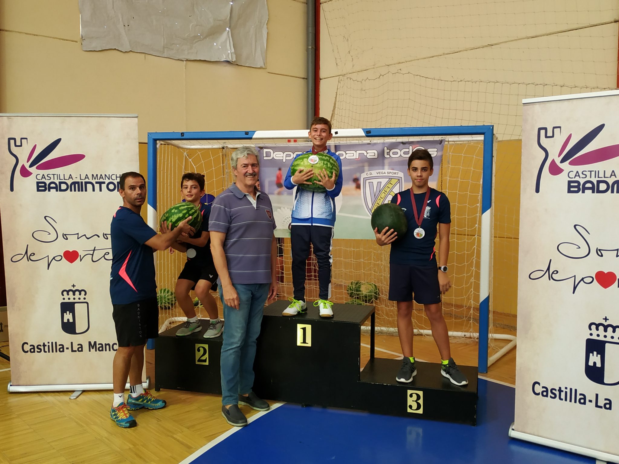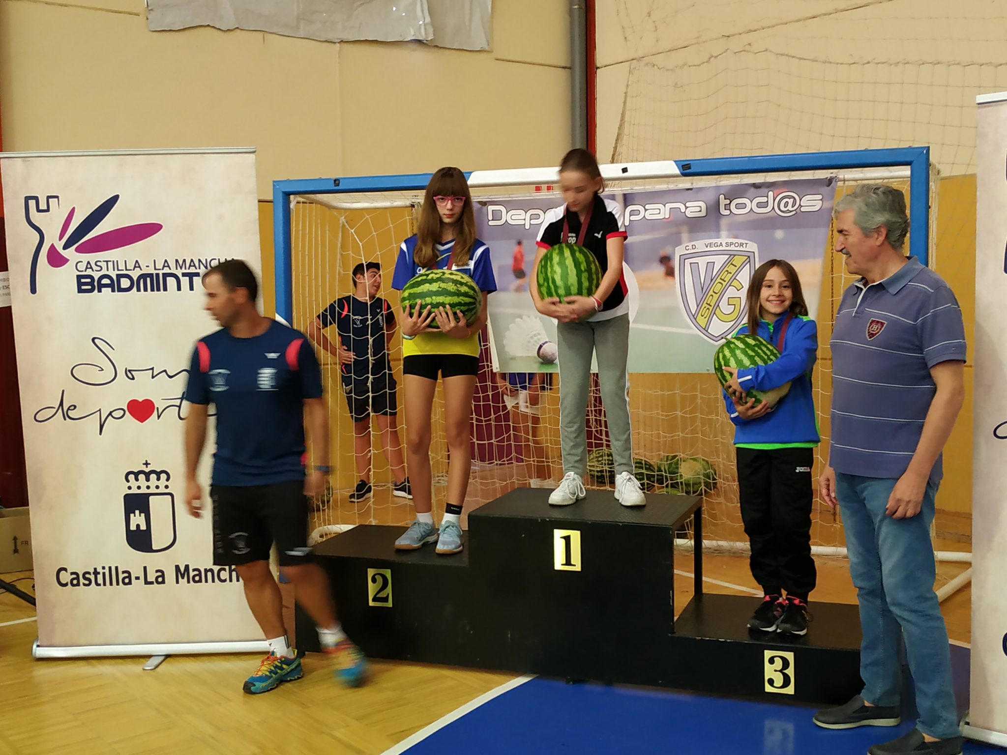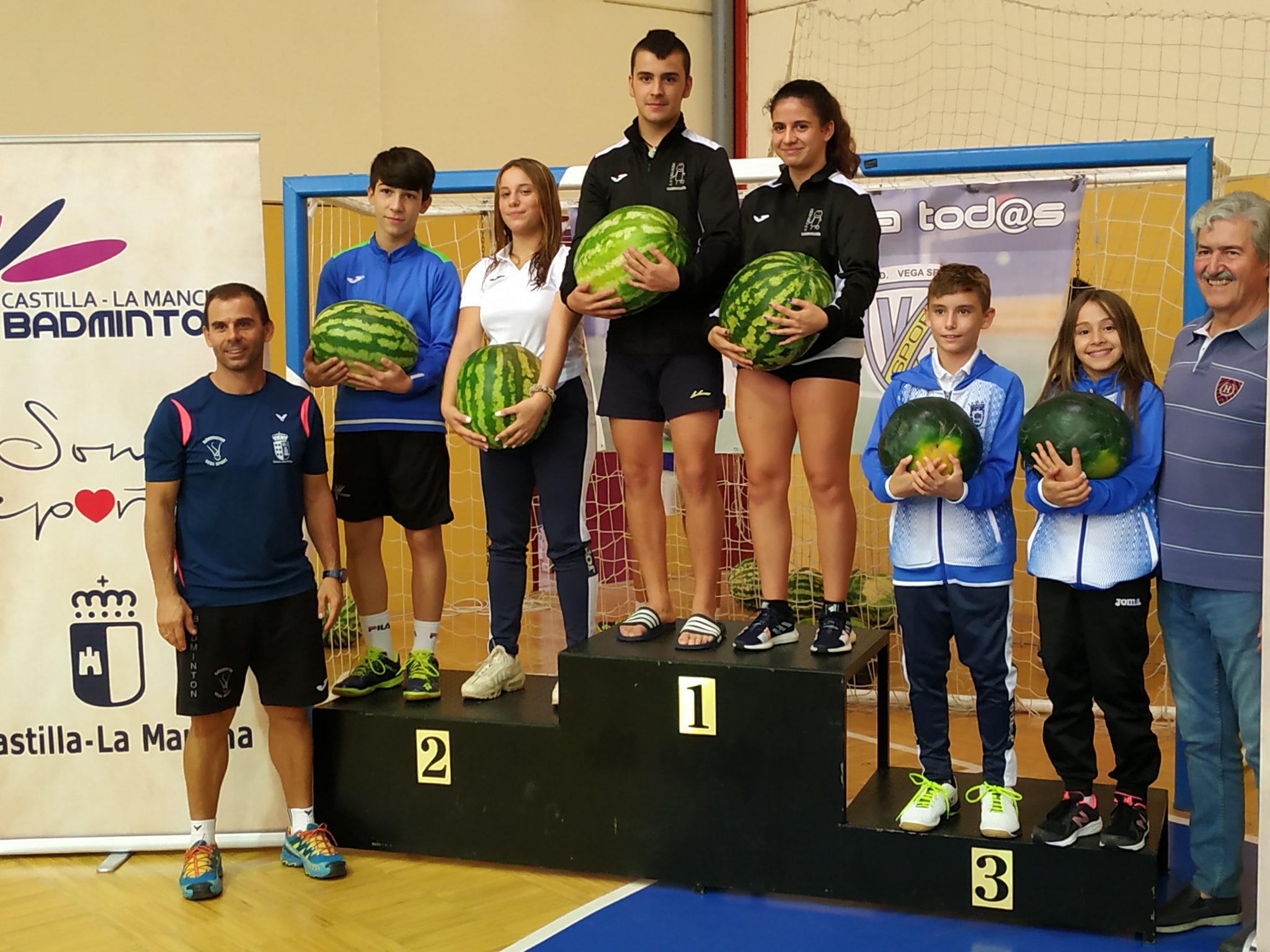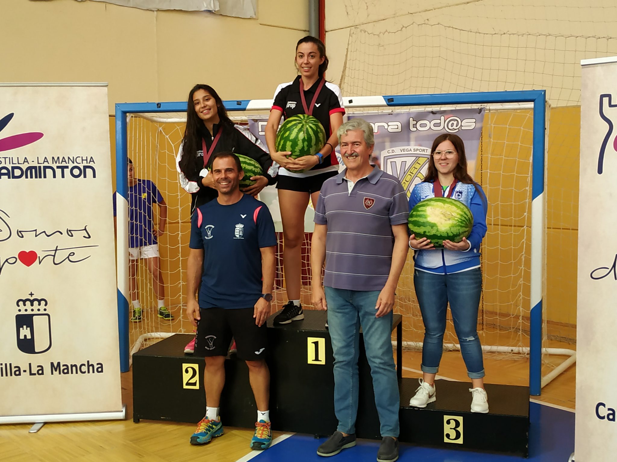 Al final, jornada lúdica para todos donde pudimos disfrutar de buenos partidos de bádminton en un ambiente sano y con sabor a sandía ya que hubo degustación de las deliciosas sandías de Velada. Posteriormente, los campeones tendrían como recompensa su medalla más una espectacular sandía.